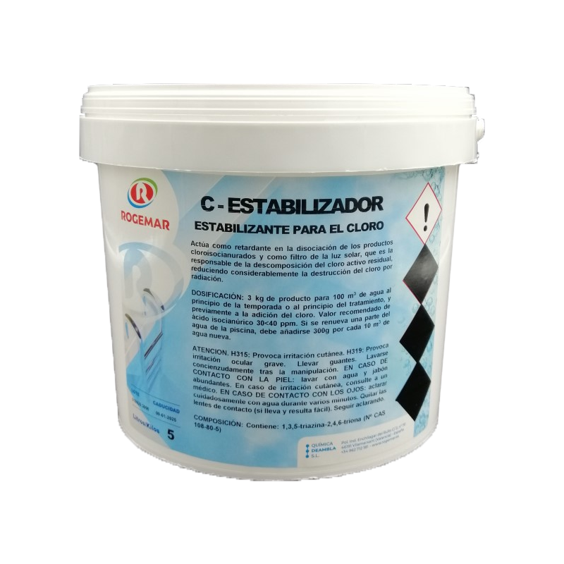 ESTABILIZADOR del cloro (Ácido Isocianúrico) granulado. Estabiliza y previene la destrucción del cloro por la acción de los rayos UV del sol.