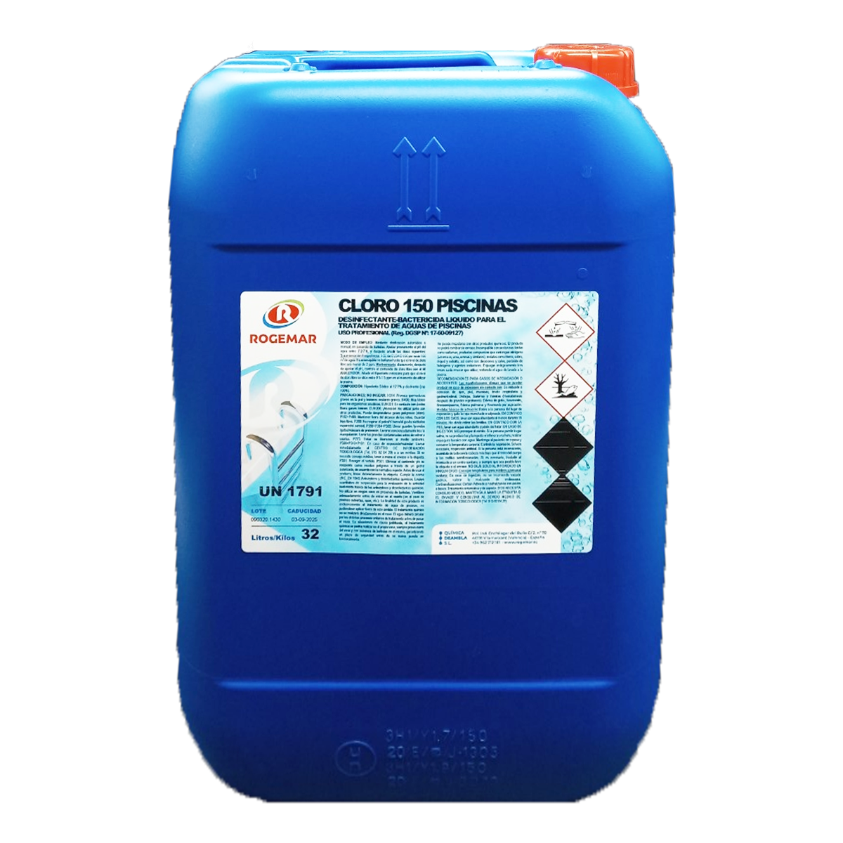 Concentrado 180grs x litro a la salida de fábrica. Sin estabilizador Ácido Isocianúrico.
