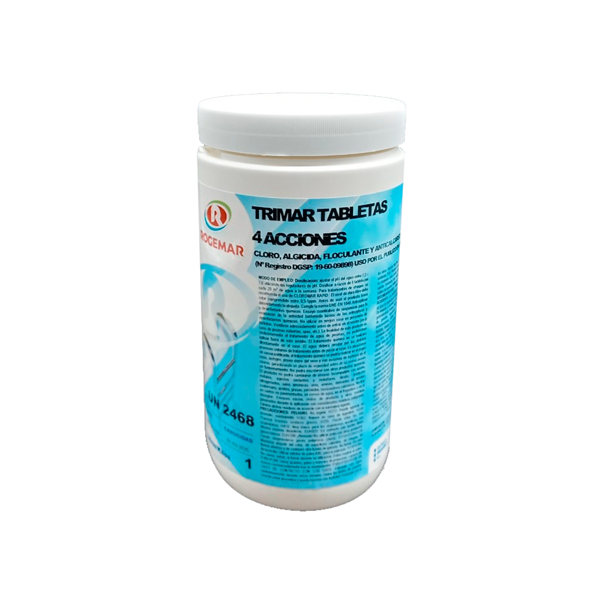 Desinfectante-bactericida, algicida , floculante y anticalcáreo para el tratamiento integral del agua de las piscinas.